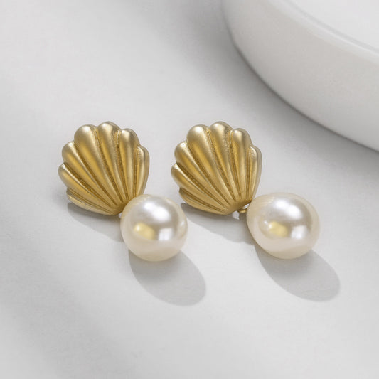 Artificial Pearl Niche Temperament Earrings Women's 18K Gold